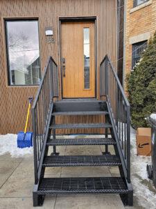 Steel stairs are a trusted choice for properties in North York, offering a combination of strength, style, and long-lasting durability. Perfect for high-traffic areas, these stairs are designed for minimal maintenance, making them ideal for both residential and commercial spaces. Art Metal enhances the resilience of each steel stair with a galvanization and powder-coating process, preventing rust and preserving the stairs’ sleek appearance. This finish protects the stairs from the effects of North York’s weather, ensuring they remain functional and visually appealing for years.